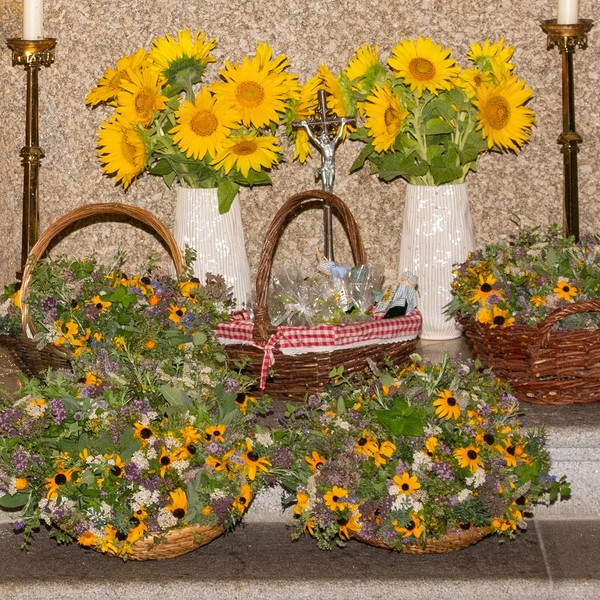 Viele Vorbereitungen unserer Goldhaubenfrauen waren wieder notwendig, um das beliebte religiöse Brauchtum der Kräutersegnung am Hochfest Mariä Aufnahme in den Himmel feiern zu können.